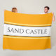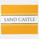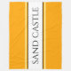 Este diseño elegante y divertido incluye texto SANDCASTLE dentro de una amplia franja blanca central realzada con rayas de carreras en negro, amarillo y naranja contra rayas de borde exterior azul brillante. Los colores y el texto se pueden personalizar.