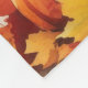 Una pintura acuarela de un perro alegre sentado en medio de un montón de hojas caídas vibrantes, rodeado de pequeñas calabazas y bellotas dispersas. El perro lleva un pequeño gorra peregrino y vigas de alegría, capturando el espíritu del Día de Acción de Gracias. Como telón de fondo, los campos de suave cosecha y los árboles de tonos dorados crean un ambiente campestre tranquilo. Las texturas suaves y los tonos cálidos y mudos del otoño le dan al lugar un ambiente acogedor y nostálgico, perfecto para celebrar la belleza de la temporada.
