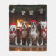Una escena encantadora capta la esencia de la comodidad y el espíritu de las vacaciones mientras los compañeros peludos adornados en gorras de Santa Claus se reúnen alrededor de una chimenea chocante. La calidez de la chimenea crea un ambiente acogedor para estos adorables caninos, mientras que las medias festivas cuelgan al fondo, lo que crea un ambiente alegre. El encantador ilustracion retrata una imagen atemporal de la compañía y la alegría festiva, perfecta para celebrar la temporada navideña con un toque de encanto canino.