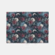 Un patrón rosa de caída soñada, con lunas etéreas y grandes flores de borgoña flotando en un cielo lluvioso sobre un fondo azul oscuro.