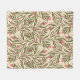 Seamless repeating pattern featuring stylized pink bell-shaped flowers interspersed with flowing, dark green foliage against a pale cream background.