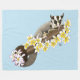 Un lindo planeador de azúcar sentado en una rama de árbol con pequeñas flores rosadas, amarillas y blancas alrededor, El planeador de azúcar y las flores están todas dibujadas en un estilo de tatuaje con un fondo azul