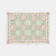 Sweet Summer Strawberry garden with watering can, flowers and foliage in a mock pieced quilt design that has a border of butterflies, bees strawberries and sunflowers. The pieced sections are coordinating fabric patterns, gingham check plaid and dots. All artwork was hand painted in watercolor on paper by internationally licensed artist and designer, Audrey Jeanne Roberts ©