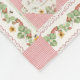Sweet Cottagecore theme Summer Strawberry garden with watering can, Strawberry flowers and foliage in a mock pieced quilt design that has a border of butterflies, bees strawberries and sunflowers. The pieced sections are coordinating fabric patterns, gingham check plaid and dots. All artwork was hand painted in watercolor on paper by internationally licensed artist and designer, Audrey Jeanne Roberts ©