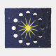 Las fases de la luna rodean un sol que brilla intensamente en un fondo estrellado