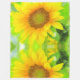¡Cama de flores amarillas brillantes! Los girasoles hacen sonreír a todos. Esta imagen de primer plano de un girasol amarillo brillante seguro que animará tu día y te hará pensar en el verano, en las posibilidades y en la vida. La imagen original se transformó en una hermosa acuarela.