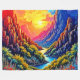 Dive into the breathtaking spectacle of this fantasy mountain valley artwork. This highly detailed, unique digital print captures the electric beauty of an unreal landscape, where fiery red peaks meet cool, deep blue shadows under a dramatic sunset. The composition, featuring a winding river and colorful wildflowers, is an emotionally engaging visual feast. Initially created by AI, a skilled artist then meticulously enhanced the design for superior uniqueness and creativity. This SEO optimized print is a perfect statement piece for modern decor, injecting bold color and wonder into any space. Place your order today and embrace the joy of owning this stunning, unforgettable scene!