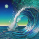 Sumérjase en la belleza surrealista de este cuadro marino, donde el sol se despide en una mezcla impresionante de opal, jade e iridiscente.