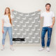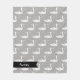 Un cisne de estilo moderno y elegante y una manta flotante de olas en blanco, negro y gris neutro. La manta tiene una bandera negra con tu nombre personalizado en la parte inferior izquierda.