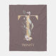 Letra T monograma floral. Letra T en textura marrón dorada acentuada con hojas de compuestos de acuarela verde, flores y polvo de oro. Personalizado con el nombre en el tipo de letra coincidente.