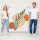Un diseño inspirado en boho de formas simples en colores rústicos de marrón, beige y naranja con un tallo de planta floral como el foco.