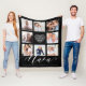 Envía un hermoso regalo personalizado a tu abuela (nana) que ella apreciará para siempre. Una manta especial personalizada para niños y familias con fotos para mostrar sus propias fotos familiares y recuerdos. Nuestro diseño presenta un sencillo diseño de cuadrícula de 8 fotos con "We Love You" y "Nana", diseñado en un hermoso estilo de escritura blanca manuscrita. Cada foto está enmarcada con un simple borde blanco. Personalizar con los nombres de los miembros de la familia.