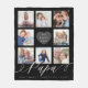 Envía un hermoso regalo personalizado a tu abuelo (papá) que apreciará para siempre. Nietos especiales y manta de gafas de fotos familiares para mostrar sus propias fotos familiares y recuerdos especiales. Nuestro diseño presenta un sencillo diseño de cuadrícula de 8 fotos con "We Love You" y "Papa" diseñado en un hermoso estilo de escritura blanca manuscrita. Cada foto está enmarcada con un simple borde blanco. Personalizar con nietos y nombres de familiares.
