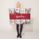 Dale a la abuela un regalo que ella apreciará. Esta manta de collage de fotos muestra ocho de sus fotos cuadradas favoritas de los nietos, junto con el mensaje "Te amo abuela". La palabra "abuela" aparece en un elegante guión de escritura a mano en blanco con florecientes al principio y al final en un fondo rojo arándano. Añade los nombres de hasta cuatro nietos. Un regalo ideal para vacaciones, cumpleaños o día de abuelos.