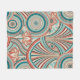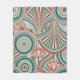 This nouveau style abstract design radiates movement in concentric circles and flowing lines in soft turquoise, coral, and cream tones.