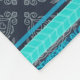 A striped collage of hand drawn retro vintage patterns in shades of turquoise blue, teal, grey, black and cyan.