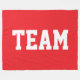 This sporty design features white athletic TEAM text against bright red background. The colors and text in this design can be personalized.