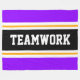 Este diseño deportivo, atlético, presenta texto en negrita de TEAMWORK dentro de una banda ancha negra realzada con doble franjas de carreras blancas y amarillas contra rayas exteriores violetas brillantes. El texto de este diseño se puede personalizar.