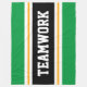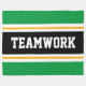 Este diseño deportivo y atlético presenta texto en negrita de TEAMWORK dentro de una banda negra ancha realzada con doble franjas de carreras blancas y amarillas contra franjas exteriores brillantes de color verde kelly. El texto de este diseño se puede personalizar.