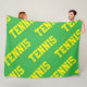 This sporty fun design features bright yellow athletic diagonal TENNIS text tiled repeatedly against bright green background. The colors and text in this design can be personalized.