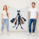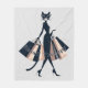 Un gato antropomórfico de moda lleva varias bolsas de compras, con la frase "Terapia minorista" escrita en una de las bolsas. El felino está vestido con elegancia y lleva gafas de sol, exuberando un aire de sofisticación.