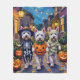 Los Adorables Territorios Blancos de West Highland vestidos con juguetones disfraces de Halloween llevan baldes de calabaza mientras truco o truco bajo el cielo iluminado por la luna. Este diseño festivo resalta el blanquecino abrigo de la raza, los ojos brillantes y la personalidad animada, capturando a la perfección la atmósfera espeluznante y divertida de la noche de Halloween. Una alegre celebración para los fans de Westie, amantes del perro y entusiastas de Halloween por igual.