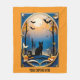 Esta manta se presenta en varios tamaños, incluyendo pequeña, mediana y grande. Este diseño de manta presenta un estilo de arte espeluznante con una atrevida paleta de colores de naranja, azul y negro. La imagen central representa a un gato negro con mirada penetrante, sentado en un bosque oscuro y encantado bajo una luna llena de brillo. Los murciélagos vuelan por el cielo, añadiendo un toque espeluznante, mientras que las calabazas, las viñas onduladas y los árboles sin hojas enmarcan la escena, realzando la atmósfera otoñal. Los bordes exteriores de la obra de arte están bordeados por un arco dorado y azul, lo que le da un aire místico casi portal. En la parte inferior hay un espacio de texto de personalizable donde se puede añadir una leyenda, lo que lo convierte en una pieza única para la decoración de gatos espeluznantes o para las fiestas de temporada.