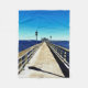 A striking photograph capturing the dramatic perspective of the fishing pier at Springs Park in Green Cove Springs, Florida. The strong, leading lines of the railings and concrete deck draw the eye straight toward the distant gazebo on the St. Johns River. The composition is dominated by the contrasting shades of blue, the brilliant sky meets the deep, intense river water, while the elegant light posts and long shadows add depth and character. This image is a beautiful piece of Florida scenery, perfect for anyone who loves dramatic waterfront architecture and bold color.