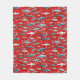 Matrícula en forma de tiburones, peces y plantas acuáticas en un fondo rojo profundo