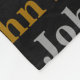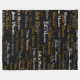 Cree una manta elegante para él, con su propio nombre repetido por la superficie negra de la tela