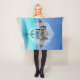 Una pequeña manta con una imagen tropical de un mar turquesa y una playa aislada de arena blanca, una única sombrilla de playa de paja está sola. La tipografía dice Beach Bum.