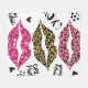 tipografía purpurina con patrón de labios
