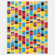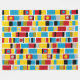 Un diseño de rayas con bandas pintadas a mano, bloques y manchas de color en tonos rojos, ámbar, dorados profundos, azules, grises, negros y blancos. Inspirados por tótems pintados.