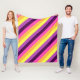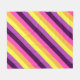 Una manta de pulpa de tamaño mediano con un diseño de patrón lindo y colorido de rayas diagonales en púrpura de ciruela, lavanda, amarillo limón, naranja de melón y magenta brillante.