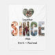 A romantic customizable design featuring couple names and a personalized year with a unique twist — both a heart-shaped frame and the word “SINCE” serve as photo placeholders, allowing you to showcase special memories in a creative way. Perfect for anniversaries, weddings, Valentine’s Day, or as a meaningful gift celebrating love and togetherness.