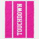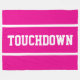 This sporty football design features white bold TOUCHDOWN text and edge stripes against bright pink background. The colors and text in this design can be personalized.