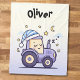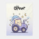 Esta manta para bebé de Tractor Dormilón presenta un dulce tractor de lavanda que lleva un gorro de dormir a rayas, rodeado de un cielo tranquilo de estrellas brillantes y una luna creciente. Diseñado con pasteles suaves y tranquilizadores, este gráfico listo para la guardería es perfecto para historias a la hora de dormir, siestas por la tarde o como un regalo personalizado considerado para el baby shower.