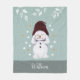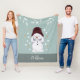 Esta manta de lana azul muestra a un lindo muñeco de nieve disfrutando de la nieve. personalice esta manta con un nombre.
