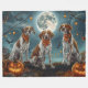 Descanse el espíritu espeluznante con este inquietante diseño de Halloween que presenta una manada de perros bajo un cielo oscuro, iluminado por la luna, rodeados de bates voladores y calabazas brillantes. Perfecto para los amantes de la diversión con sus peludos amigos.