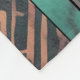 Diseño tribal azteca nativa de acuarela norteamericana con un patrón geométrico suroeste en tonos azul pastel, rosa y naranja sobre un fondo de grano de madera.