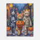 gatos de Tuxedo adorables vestidos con juguetones disfraces de Halloween llevan baldes de calabaza mientras truco o truco bajo el cielo iluminado por la luna. Este diseño festivo destaca el clásico abrigo blanco y negro de la raza, los ojos brillantes y la personalidad curiosa, que capturan a la perfección la atmósfera espeluznante y divertida de la noche de Halloween. Una encantadora celebración para los amantes del gato y los fans de Halloween.