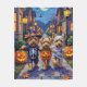 Los yorkipoos adorables vestidos con trajes juguetones de Halloween llevan baldes de calabaza mientras truco o truco bajo el cielo iluminado por la luna. Este diseño festivo resalta los suaves rizos de la raza, los ojos brillantes y la personalidad animada, capturando a la perfección la atmósfera espeluznante y divertida de la noche de Halloween. Una alegre celebración para los amantes del perro y los hinchas de Halloween por igual.