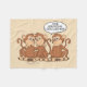 Tres monos bonitos y divertidos Personalizados con la burbuja del discurso "Tu novia se parece a mamá". Tres tontos Chimpancés Diseño de ilustracion gráfico marrón con una frase graciosa. Los chimpancés de un novio y una novia están abrazados y su hermano (o hermana) comenta que su novia se parece a su madre. Los animales de la misma especie se ven iguales, al menos para nosotros.
