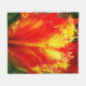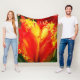 Fleece Composición colorida de una manta con un tulipán rizado brillante y dos colores brillantes. La imagen es una captura cercana, o imagen macro, que expone muy claramente la sofisticada arquitectura pétalos con bordes de incisión fina, líneas de textura delgada y complicadas complicaciones amarillas rojas. Los bordes incisivos y la paleta de colores vibrantes recuerdan a un loro brillante, ese es el origen del otro nombre de la flor, tulipán de loro. También conocida como "rily Sue" o tulipán anejo, esta hermosa flor muestra colores intensos y extravagantes que casi brillan bajo los rayos del sol del mediodía de mayo.