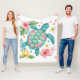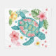 Turquesa, melocotón y dorada tortuga marina y flores tropicales para casa de playa, camping playa o temática de playa