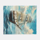 Un barco de vela de madera atraviesa las olas bajo el cielo azul y las nubes del buen tiempo sobre esta hermosa manta de lana. Perfecto para todo aquel que ame la vela.