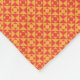 El diseño muestra un patrón geométrico repetido con una combinación de colores rojo y amarillento. El patrón consiste en anillos de entrelazado o formas de eslabón de cadena que están estrechamente empacadas para crear una teselación en toda la imagen. Cada elemento individual del diseño parece ser un motivo con cuatro formas circulares que se intersectan en el punto central, formando una unión cruzada con formas de diamante en el medio. El conjunto es de una teselería vibrante y ornamentada, y el color cálido le confiere una estética un tanto enérgica y posiblemente tradicional. El patrón es simétrico y está distribuido de manera uniforme, lo que sugiere un diseño cuidadoso destinado a ser utilizado en papeles pintados, textiles u otras superficies decorativas.