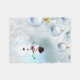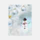 Bolas de Navidad, copos de nieve y muñeco de nieve feliz sobre fondo gris brillante.