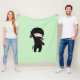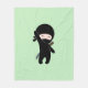 Feliz personalizado ninja vestido de negro con el brazo levantado en ondear. Se puede ver la tradicional espada japonesa katana sobre su hombro.
