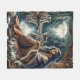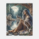 Junto a un río tranquilo, un nativo indio se sienta elegantemente bajo el resplandor de la luna llena. Rodeada de árboles exuberantes, dos lobos se acercan a ella pacíficamente, reflejando el profundo vínculo entre la naturaleza y el espíritu en este encantador momento crepúsculo.